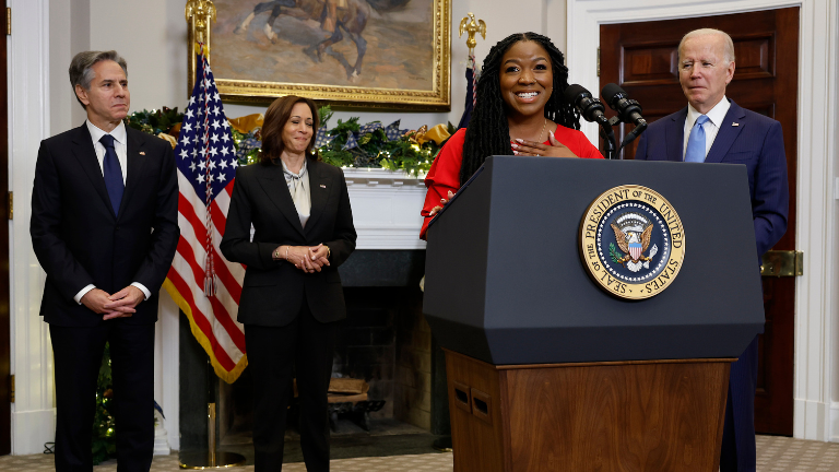 “Over the last 9 months you have been so privy to one of the darkest moments of my life and so today I’m just standing here overwhelmed with emotions but the most important emotion that I have right now is just sincere gratitude for President Biden and his entire administration.”